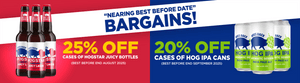 Offer applies to cases of Juicy Hogstar bottles dated Best Before end of August 2025 and cases of Hog IPA cans dated Best Before September 2025 only.