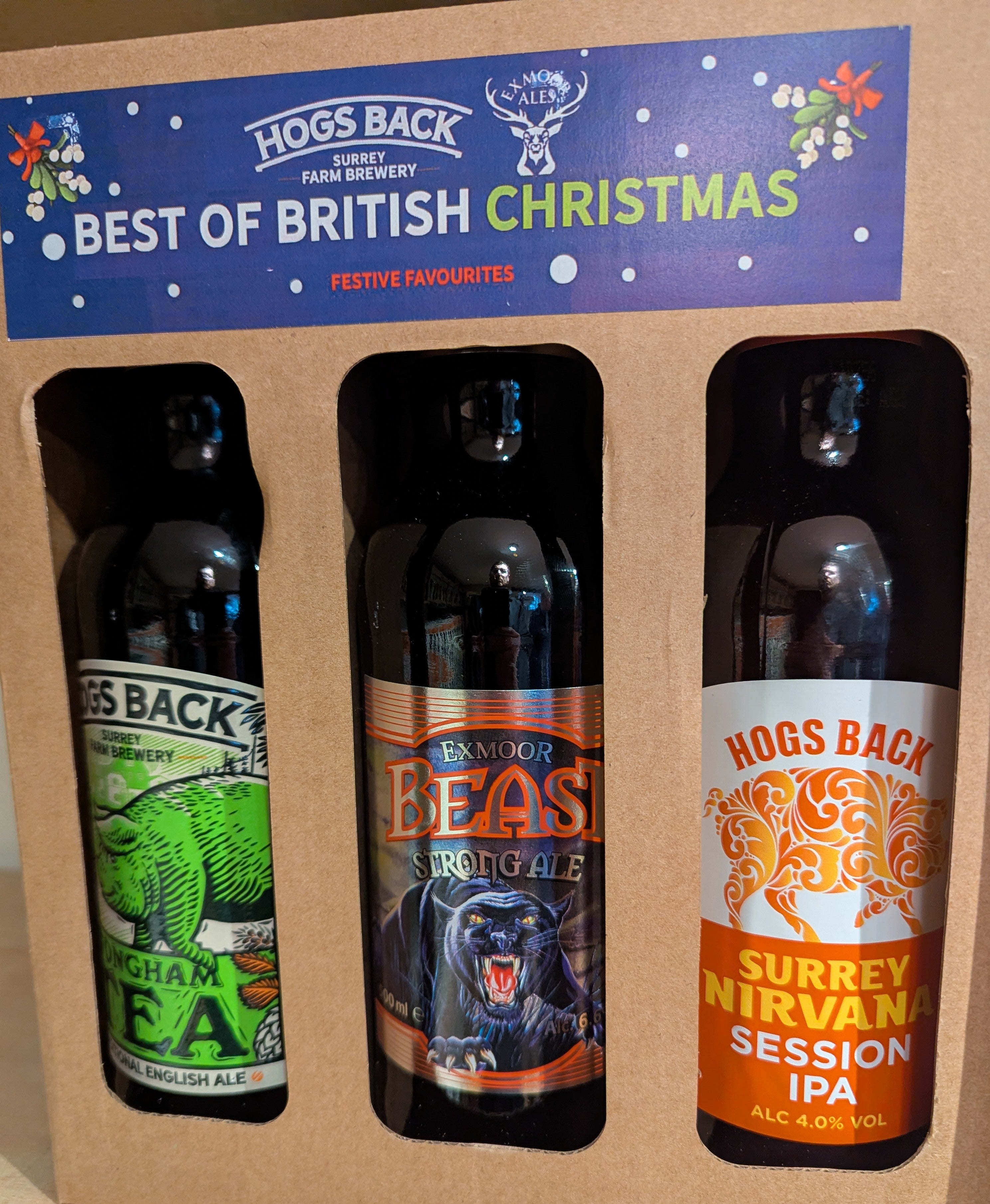 Contains six 500ml bottles (1 x TEA, 1 x Exmoor Beast, 1 x Surrey Nirvana, 1 x Exmoor Gold, 1 x Exmoor Stag, 1 x RIP Snorter)