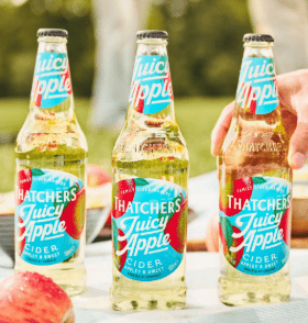 Thatchers Juicy Apple is the ultimate blend of sun-drenched apples and 100% renewable electricity. Mouth-wateringly sweet, crisp, and happily appley in every drop.